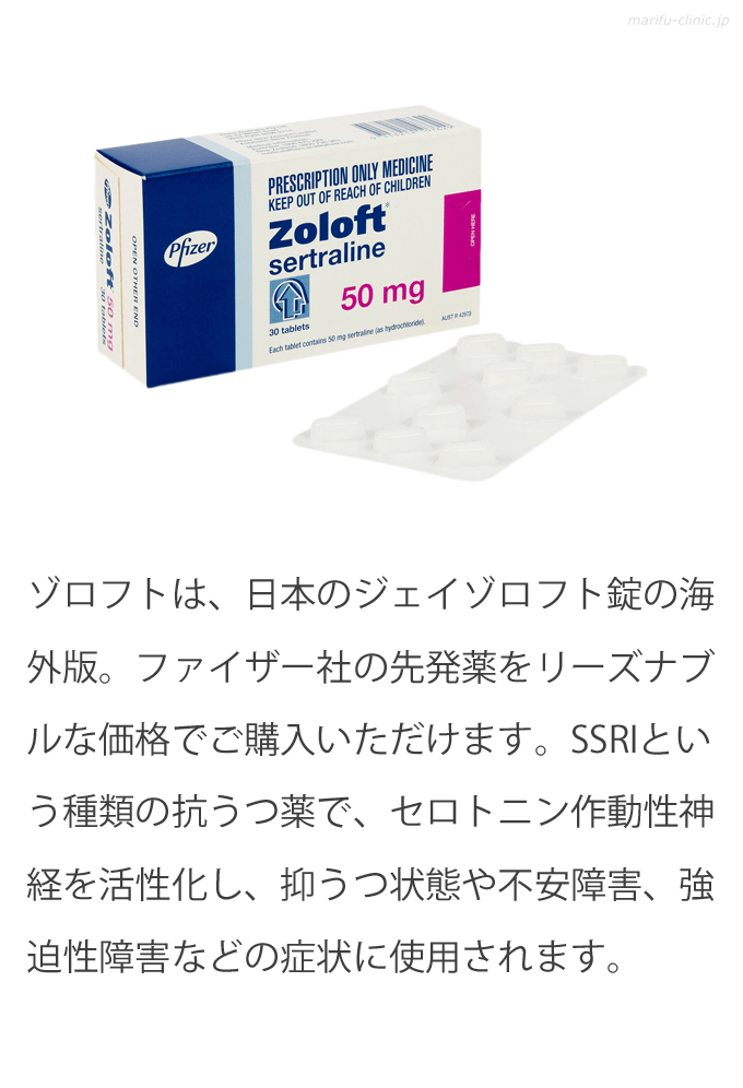ゾロフトは、日本のファイザー株式会社によって製造・販売されている抗うつ剤です。日本では、「ゾロフト錠」という商品名で市販されています。ゾロフトは、日本国内では商品名である「ゾロフト」の名称で使用されています。ゾロフトはセロトニンを増加させることに重点を置いており、他の抗うつ剤よりも効力が強く、他の薬との併用でも影響が少ないという唯一の特徴を持っています。
